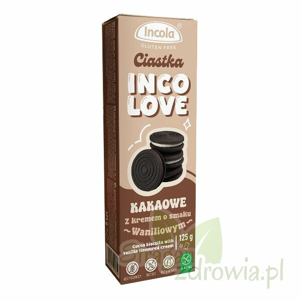 Chrupiące ciasteczka Incolove z delikatnym kremem waniliowym i subtelną nutą kakao to idealna słodka przekąska na co dzień. Bez glutenu, pszenicy, soi i laktozy – smaczna przyjemność bez kompromisów.