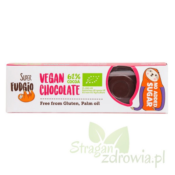 Baton na napoju ryżowym i proszku kokosowym. Masa kakaowa min. 62%. Bezglutenowy. Zawiera substancję słodzącą. Spożycie w nadmiernych ilościach może mieć efekt przeczyszczający.