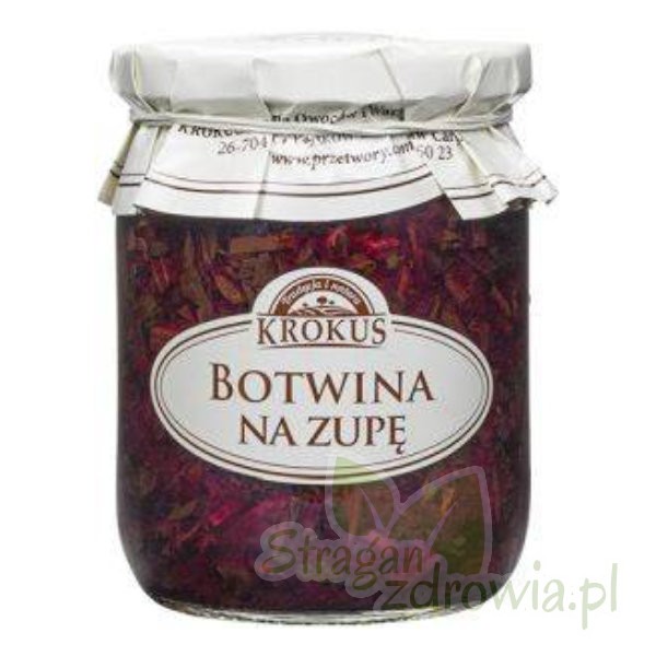 Aby przygotować zupę botwinkę wystarczy słoik botwiny połączyć z 1 l rosołu. Można dogotować ziemniaki lub przygotować ziemniaki dobierane, ewentualnie zabielić śmietaną, dosolić, dopieprzyć, posłodzić do smaku. Z naszej botwiny na zupę można równie szybko przygotować chłodnik – słoik połączyć z litrem kefiru, maślanki lub jogurtu naturalnego, dodać starte na grubych oczkach rzodkiewki i ogórki, ewentualnie dodać klika łyżek buraczków tartych KROKUS, posiekany koperek. Zarówno chłodnik jaki botwinkę można podawać z gotowanymi jajkami.