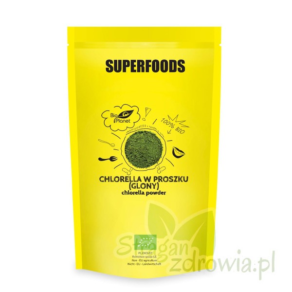 Ekologiczna chlorella to rodzaj ciemnozielonej, jednokomórkowej mikroalgi o kształcie kulistym. Ta słodkowodna alga dostępna w formie sproszkowanej pozyskiwana jest z najwyższej jakości glonów z kontrolowanych upraw. Ciemnozielony kolor oraz nazwę zawdzięcza chlorofilowi - naturalnemu barwnikowi. Wyróżnia się bardzo wysoką zawartością błonnika i pełnowartościowego białka roślinnego.