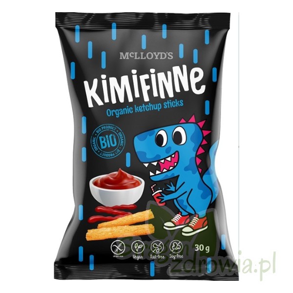 Ekologiczne chrupki kimifinne to świetna przekąska dla dzieci i dorosłych. Pałeczki ketchupowe nie zawierają glutenu, soi, orzechów i są odpowiednie dla wegan.