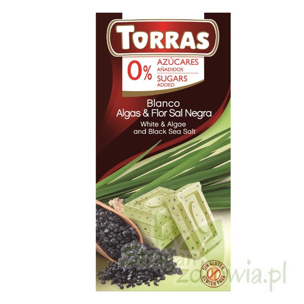 Bezglutenowa czekolada biała z algami i czarną solą morską słodzona maltitolem stanowi doskonałą przekąskę. Połączenie słodkiej czekolady, alg i soli sprawia, że każda kostka rozpływa się w ustach.
