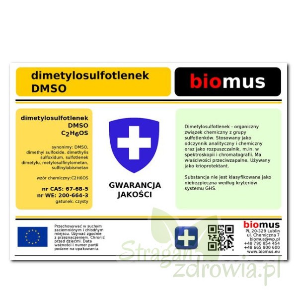 Synonimy: DMSO, dimetylu sulfotlenek, dimethyl sulfoxide, metylosulfotlenek, metylosulfinylometan,