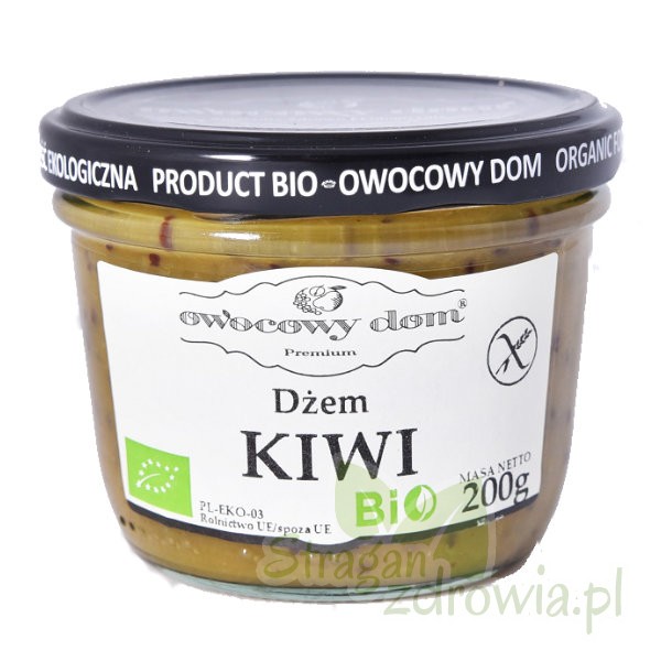 Ekologiczny dżem z kiwi, pasteryzowany o obniżonej zawartości cukru. Dżem niskosłodzony to lepsza, zdrowsza alternatywa dla dżemów w pełni słodzonych. Można nie tylko smarować nim chleb albo domowe gofry, lecz także dodawać do deserów, czy też nadziewać nim naleśniki.