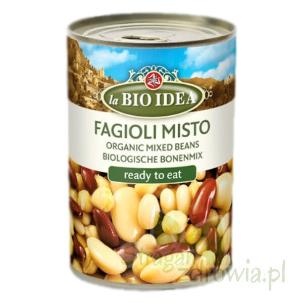 woda, czerwona fasola kidney* (15%), ciecierzyca* (15%), biała fasola drobna* (15%), fasola masłowa* (15%), sól morska (*certyfikowany składnik ekologiczny)