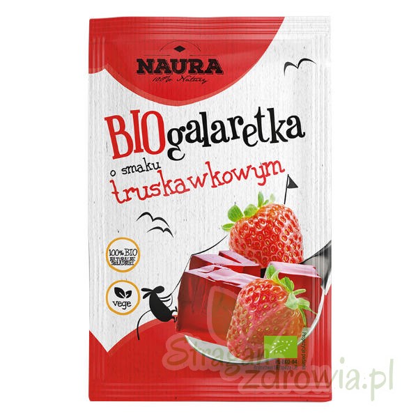 Ekologiczna galaretka truskawkowa Naura powstaje w 100% z naturalnych, certyfikowanych składników. Nie zawiera sztucznych barwników i konserwantów. Bazą deseru jest naturalna substancja żelująca pochodzenia roślinnego – agar. Składnik ten pozyskiwany jest z alg morskich i jest odpowiedni dla wegan i wegetarian. Orzeźwiający smak galaretki sprawia, że jest wspaniałym pomysłem na letnie przyjęcia, szczególnie dla najmłodszych. Podana z owocami i bitą śmietaną stworzy wykwintny deser. Galaretkę możesz wykorzystać również jako dodatek do lodów, owocowych ciast i babeczek.