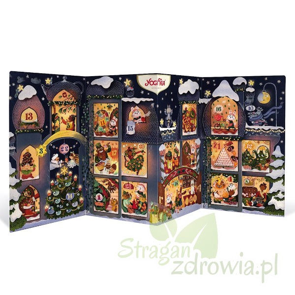 W skład kalendarza adwentowego wchodzą 24 saszetki herbatek i herbat.