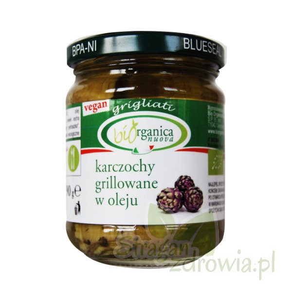 karczochy* (56,10%), olej słonecznikowy* (33,60%), oliwa z oliwek extra virgin* (8,50%), sól, czosnek*, ocet winny*, pietruszka*, bazylia*, ostra papryka chilli* (*certyfikowany składnik ekologiczny)
