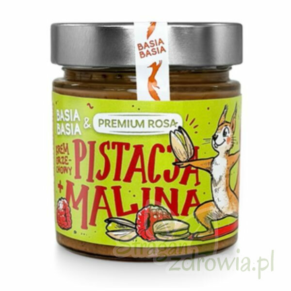 Krem orzechowy na bazie nerkowców z pistacjami, liofilizowanymi malinami i daktylami w proszku.
