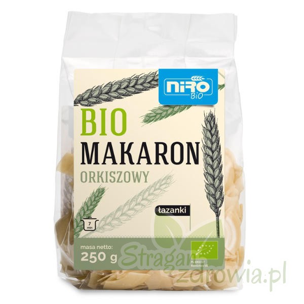 Makaron orkiszowy Łazanki wytwarzany jest z ekologicznej białej mąki orkiszowej bez dodatku jaj i soli.