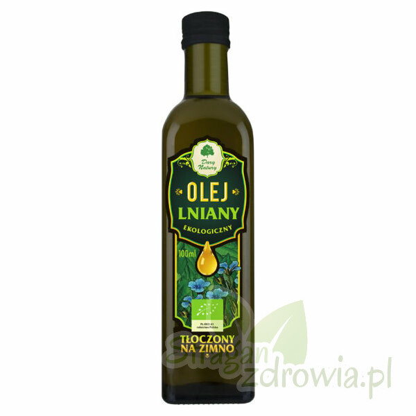 Ekologiczny olej lniany tłoczony na zimno. Olej lniany polecany szczególnie jako dodatek do sałatek, surówek, ryb, kasz, ziemniaków, serów oraz wszelkich innych dań.