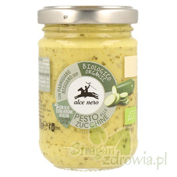 Cukinia* (65%), olej słonecznikowy*, oliwa z oliwek extra virgin*, parmezan* (mleko krowie*, sól, podpuszczka), pietruszka*, mąka ziemniaczana*, sok cytrynowy*, cukier trzcinowy*, bazylia*, sól, czosnek*, cebula w proszku*, pieprz*, regulator kwasowości: kwas mlekowy.