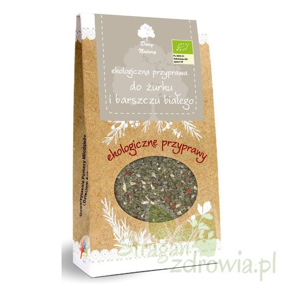 czosnek*, cebula*, majeranek*, marchew*, pietruszka korzeń*, liść laurowy*, ziele angielskie*, seler*, pieprz czarny* (w różnych proporcjach) (*certyfikowany składnik ekologiczny)
