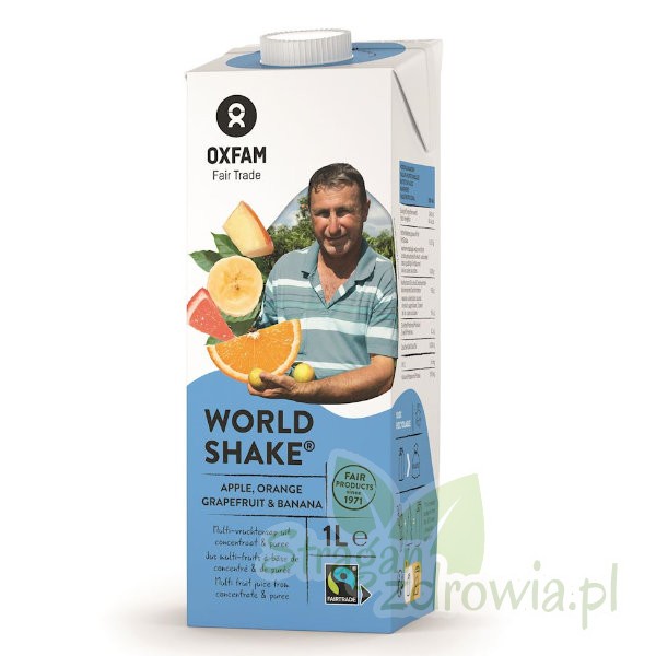 Składniki z certyfikatem Fairtrade pochodzące od producentów Faitrade: sok pomarańczowy z koncentratu, sok grejpfrutowy z koncentratu, przecier bananowy. Ogółem: 56,3 %.