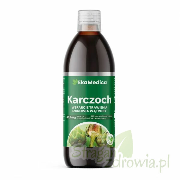 Suplement diety w formie płynnej, wyprodukowany z soku 100% ze świeżych liści karczocha. Pasteryzowany.