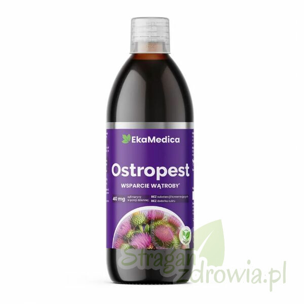 Suplement diety w formie płynnej wyprodukowany z ekstraktu z nasion ostropestu plamistego. Pasteryzowany.