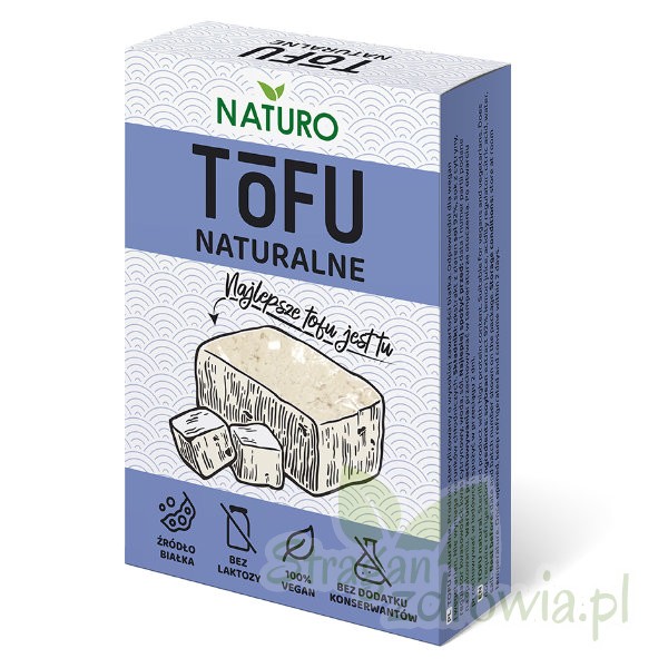 Tofu to produkt najwyższej jakości, który powstaje z soi a jej zawartość to ponad 90% co daje bardzo wysoką zawartością białka sojowego, wapnia oraz fosforu. Stanowi bardzo dobrą alternatywę dla mięsa, dlatego szczególnie ważne jest w diecie wegetarian i wegan. Nasze tofu nie wymaga składowania w lodówkach, po jego otwarciu przechowywać w lodówce. Produkt przeznaczony dla osób dorosłych i dzieci powyżej 3 roku życia z wyjątkiem osób z nietolerancją na składniki produktu.